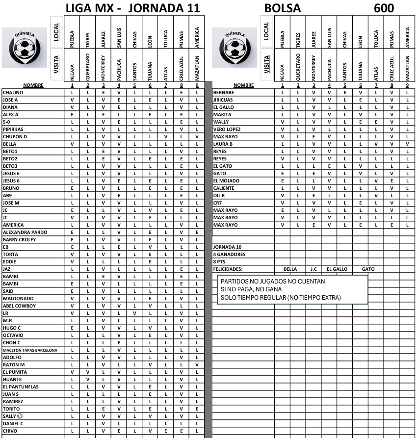 PARTIDOS NO JUGADOS NO CUENTAN. SI NO PAGA, NO GANA. SOLO TIEMPO REGULAR (NO TIEMPO EXTRA)