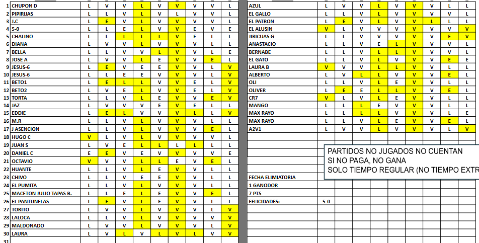 PARTIDOS NO JUGADOS NO CUENTAN. SI NO PAGA, NO GANA. SOLO TIEMPO REGULAR (NO TIEMPO EXTRA)