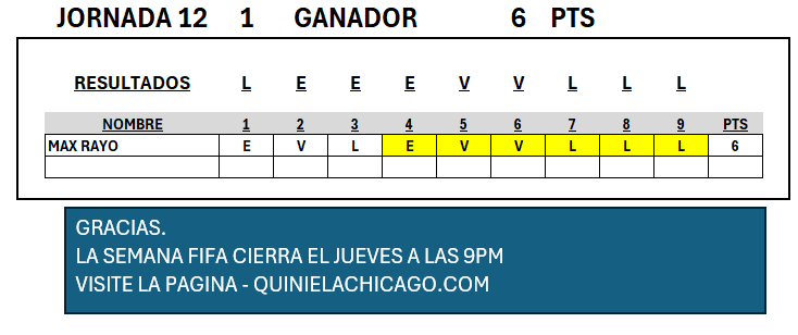 JORNADA 12 RESULTADO